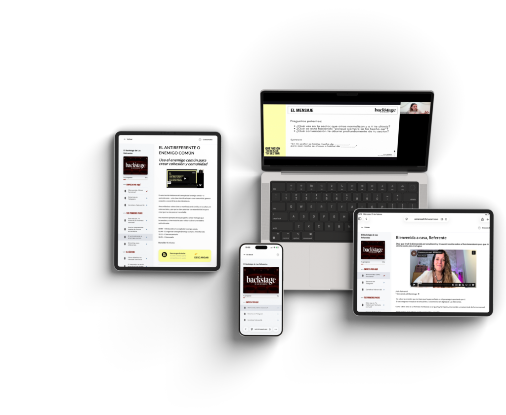 En El Backstage te acompañamos de forma personalizada para que puedas avanzar con seguirad y dirección en los ámbitos que más frenan (y retan) el crecimiento de los negocios liderados por mujeres: el poder personal, el valor propio y la estrategia de comunicación alineada, sostenida y atractiva.